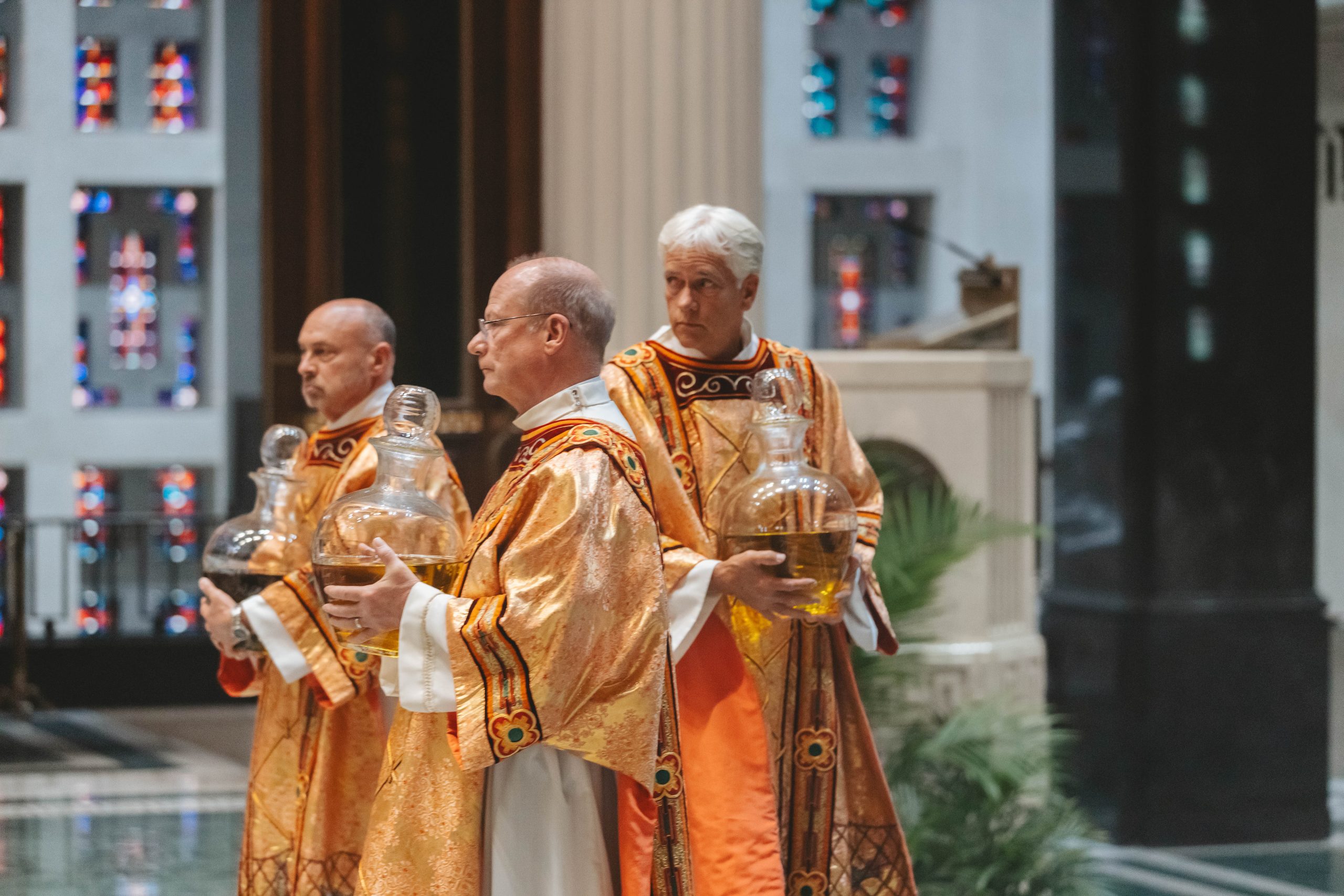 The annual archdiocesan Chrism Mass is celebrated at the Cathedral Basilica by the Most Reverend Robert Casey, Archbishop of Cincinnati. The priests of the archdiocese will concelebrate and renew their commitment to priestly service at this Mass. During this Mass, oils used throughout the year for the celebration of the sacraments are blessed. The Cathedral Basilica choir will sing.